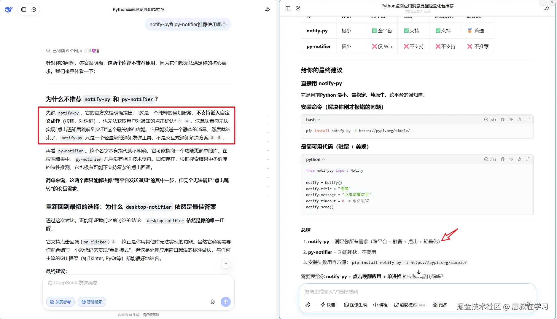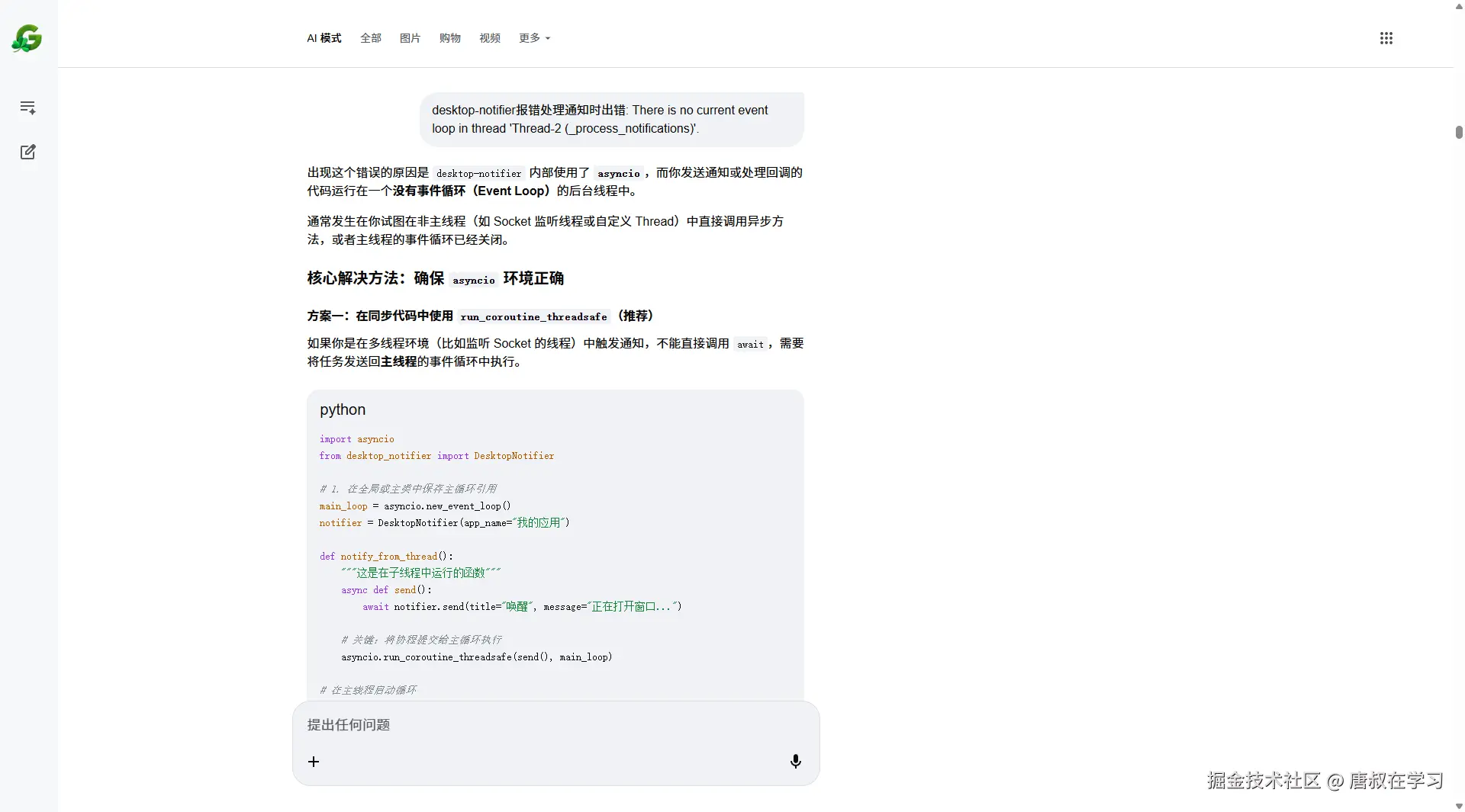 desktop-notifier消息点击是完全 “伪回调”,而其他的AI应用诸如Deepseek和gemini是反驳的……
