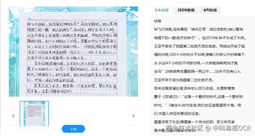 - 关键信息抽取(KIE):针对特定场景(如病历、试卷、档案卡片),利用命名实体识别(NER)和序列标注技术,直接从识别出的文本流中提取关键字段(如姓名、日期、数值),并还原其逻辑结构。