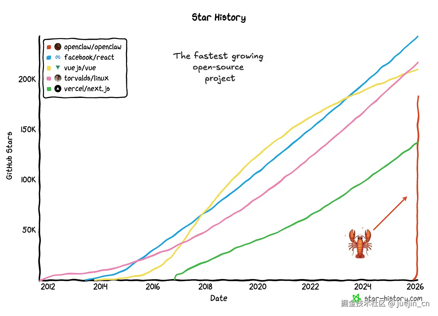 我们是如何做到的?仅仅八周内,OpenClaw 从一个周末的 WhatsApp 联动脚本,成长为 GitHub 历史上增长最快的开源项目之一,到 2 月初星标数已超过 180,000。这种增长不仅是病毒式的,而且是前所未有的。