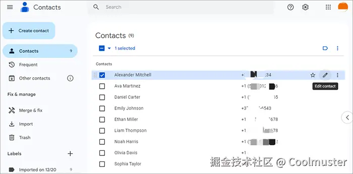 如果您的三星手机联系人已与您的 Google 帐户同步,您可以直接在电脑上的 Google 联系人中管理和编辑它们。此方法简单易用、免费,无需任何额外软件。