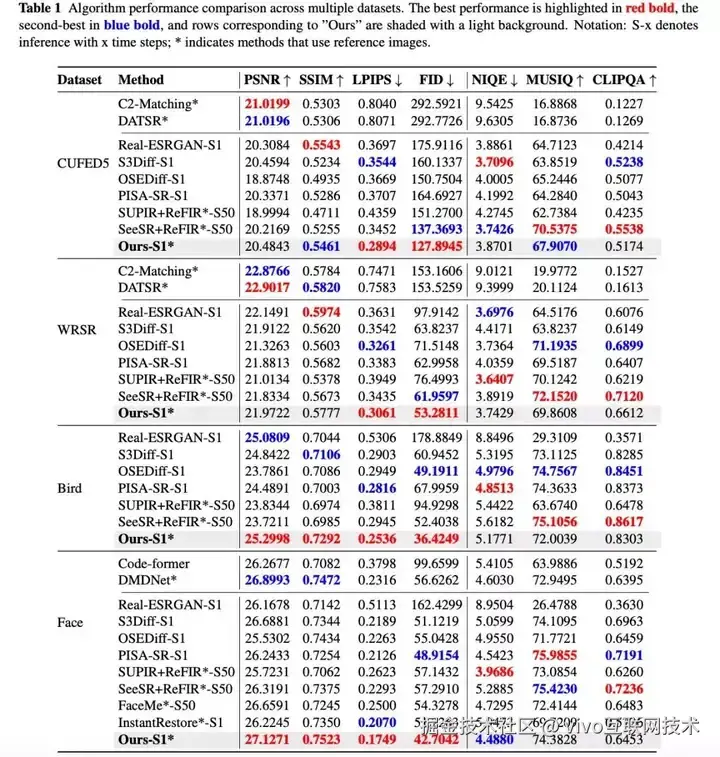 | 人脸场景 (Face) | PSNR / SSIM | 超越 FaceMe、InstantRestore 等垂直领域专用方法 |
