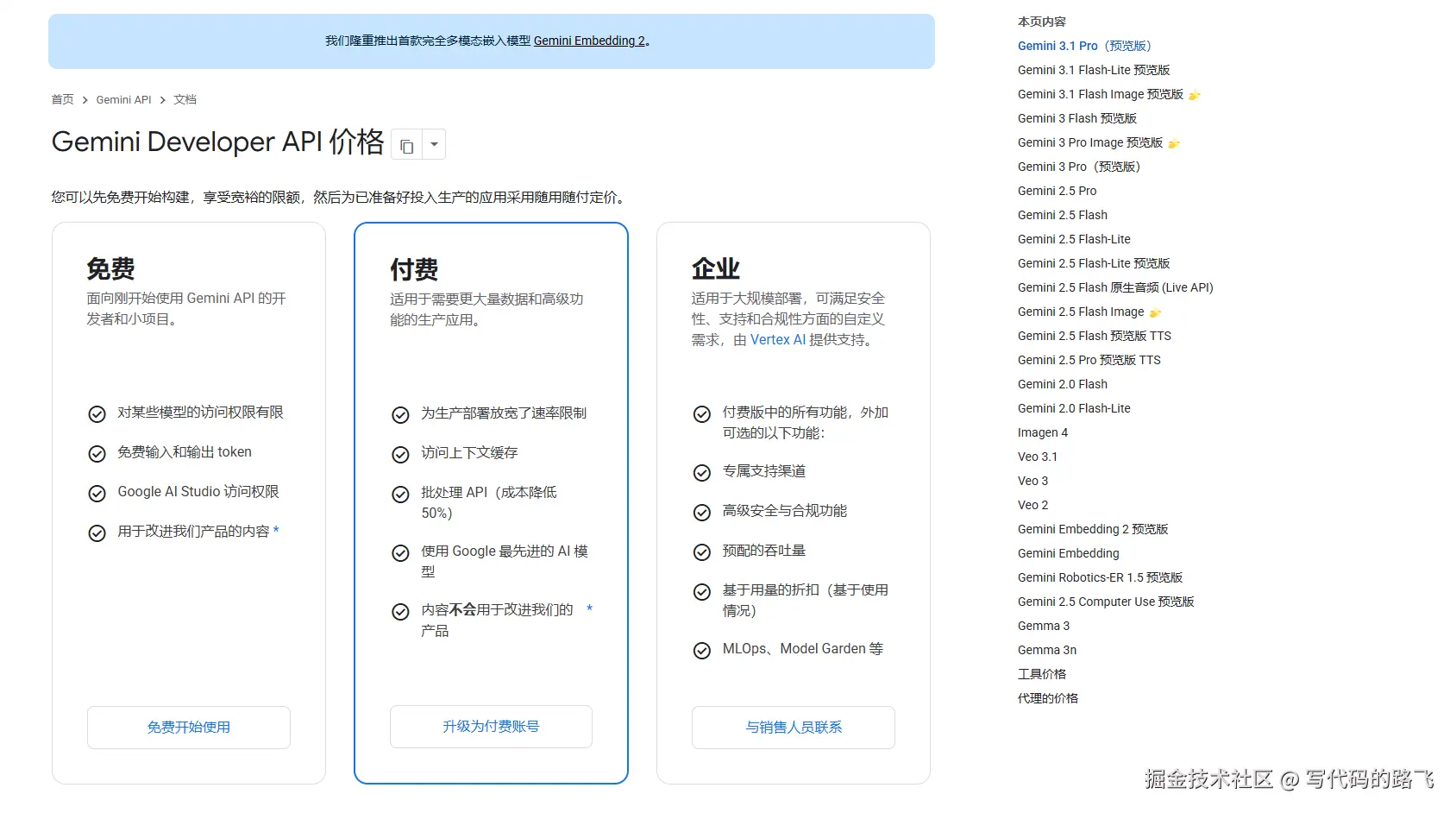 谷歌的Gemini模型 只有按量付费的形式。免费账户无法使用高级的谷歌模型,如最新的Gemini 3.1Pro就用不了。还有就是每天的使用限额比较小。