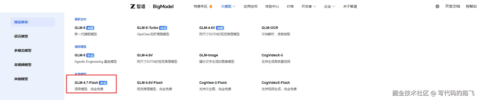 智谱良心啊, GLM4.7-Flash模型是可以免费使用的。