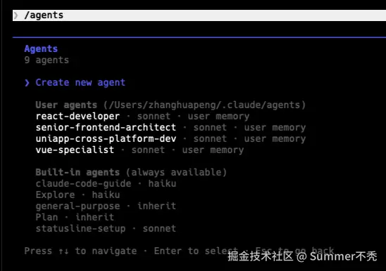 1、在 Claude Code 中,运行 /agents