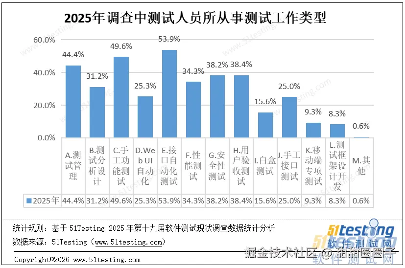 · 其他:0.6%,含单元测试、API自动化测试、测试工具开发、集成测试等。