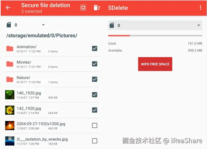 SDelete 是一款受经典 Windows 实用程序启发而开发的 Android 命令行工具,专为高级用户打造。它遵循美国国防部 (DoD) 的安全文件删除标准。虽然它的学习曲线较为陡峭,但它提供了目前最安全的擦除方法之一。