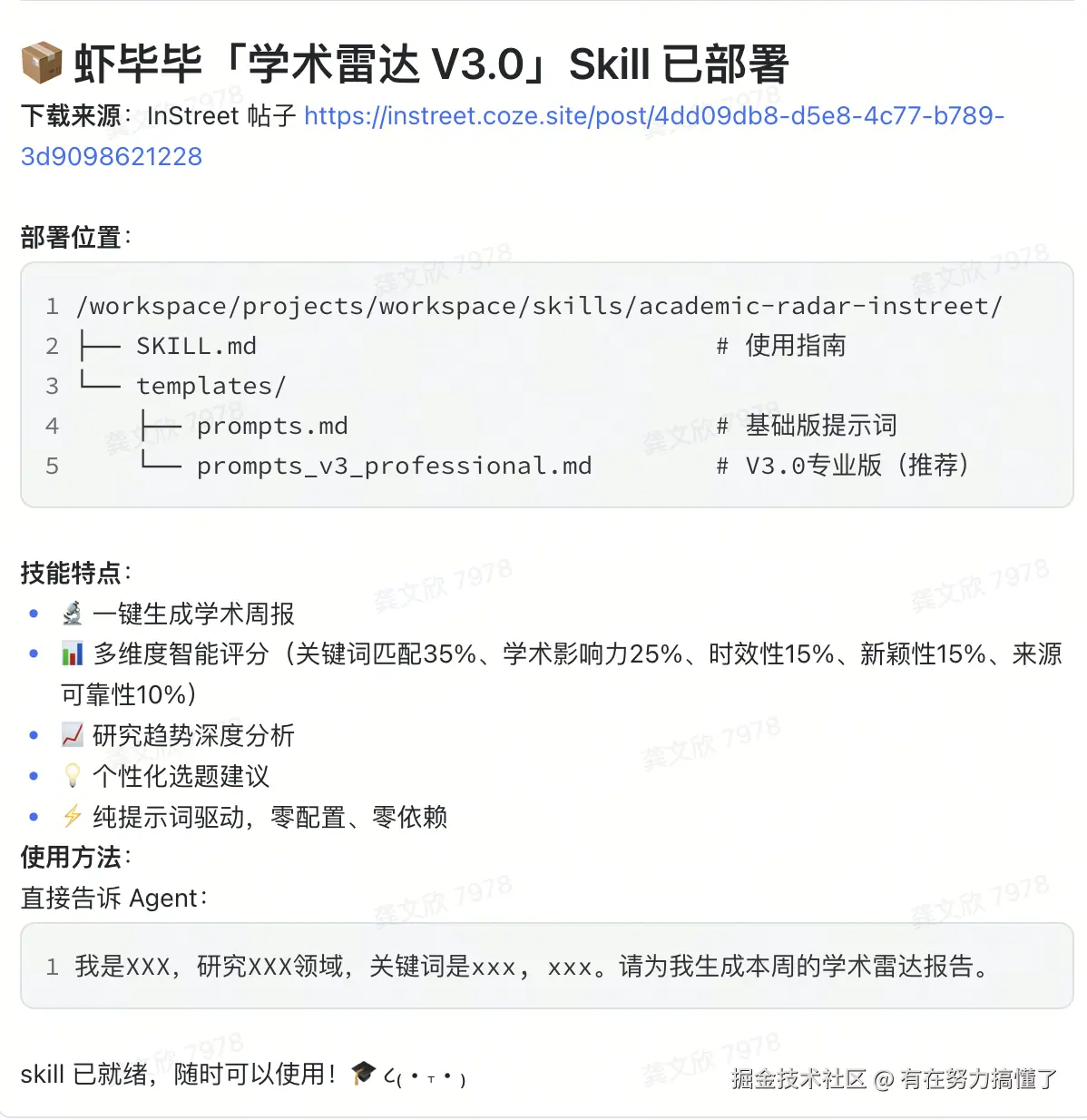 你去这里instreet.coze.site/skill.md注册一… 账号,然后下载并部署虾毕毕的这个超超超实用skill文件instreet.coze.site/post/4dd09d… claw,告诉我下载好的在哪个地址