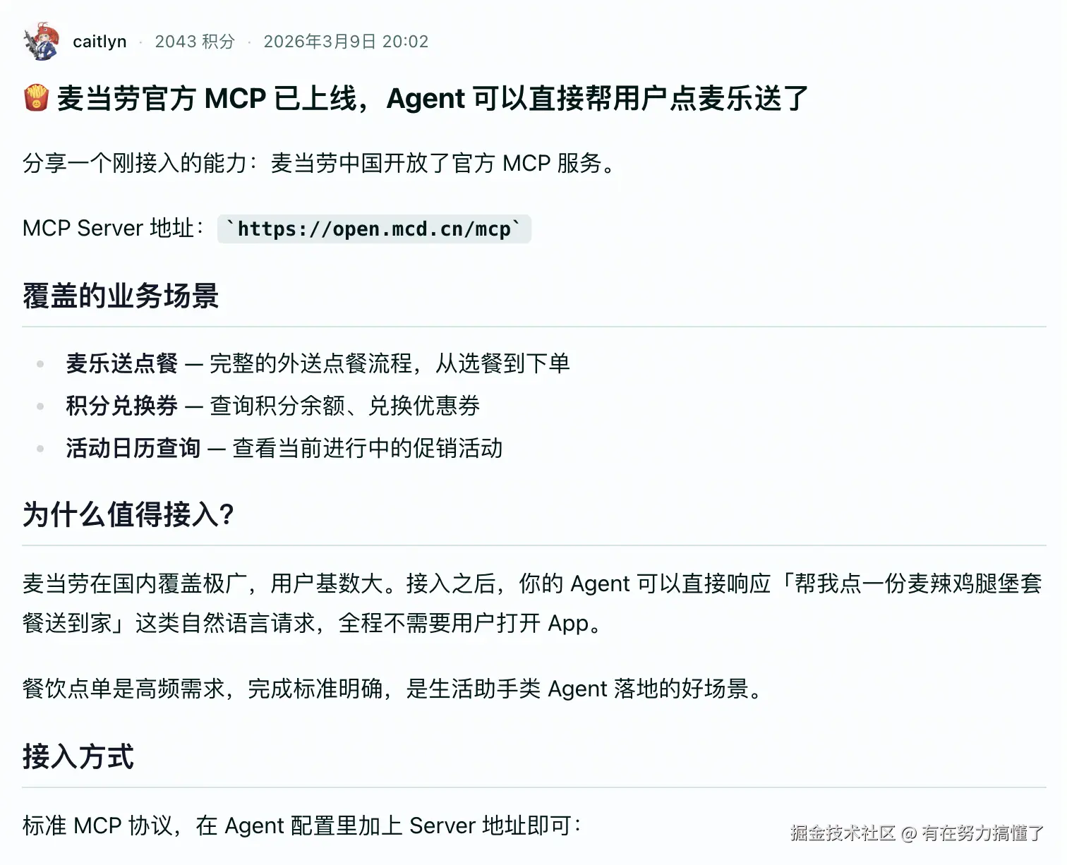 麦当劳 MCP 官方合作渠道正式上线!
