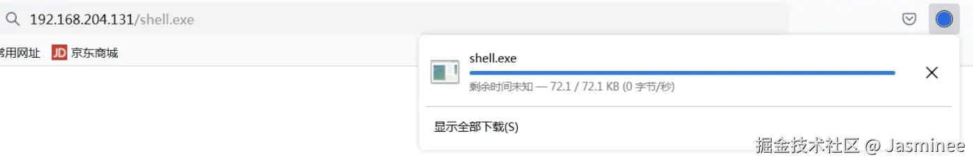 - 验证:浏览器访问 http://192.168.157.129/shell.exe ,若能下载则说明服务器搭建成功(攻击机的IP地址)