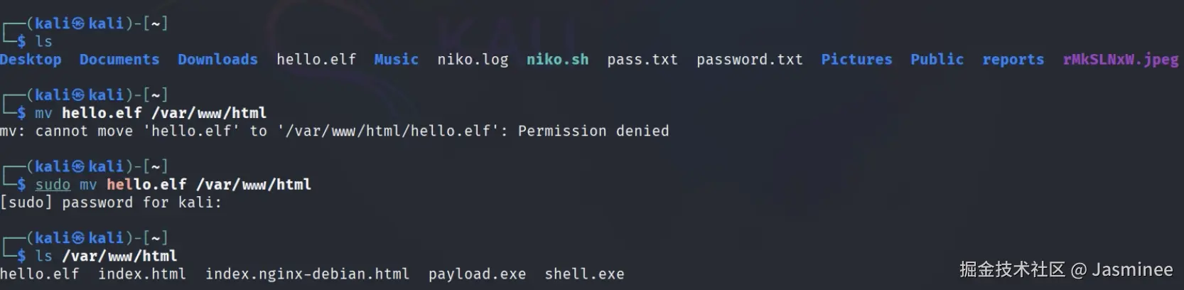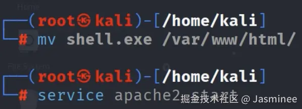 mv shell.exe /var/www/html # 将木马复制到 Apache 网站根目录