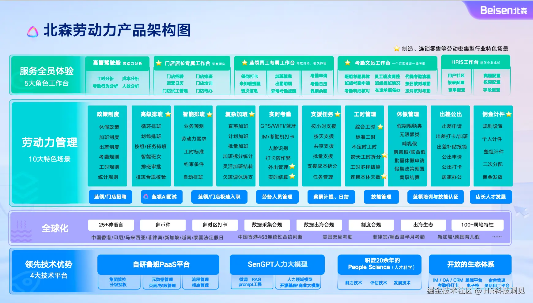聚焦劳动力管理与假勤管控领域,北森系统的核心竞争力尤为突出,兼具精细化运营、全球化适配、智能决策等多重优势,能精准适配各类复杂用工场景,具体核心优势与场景化能力如下: