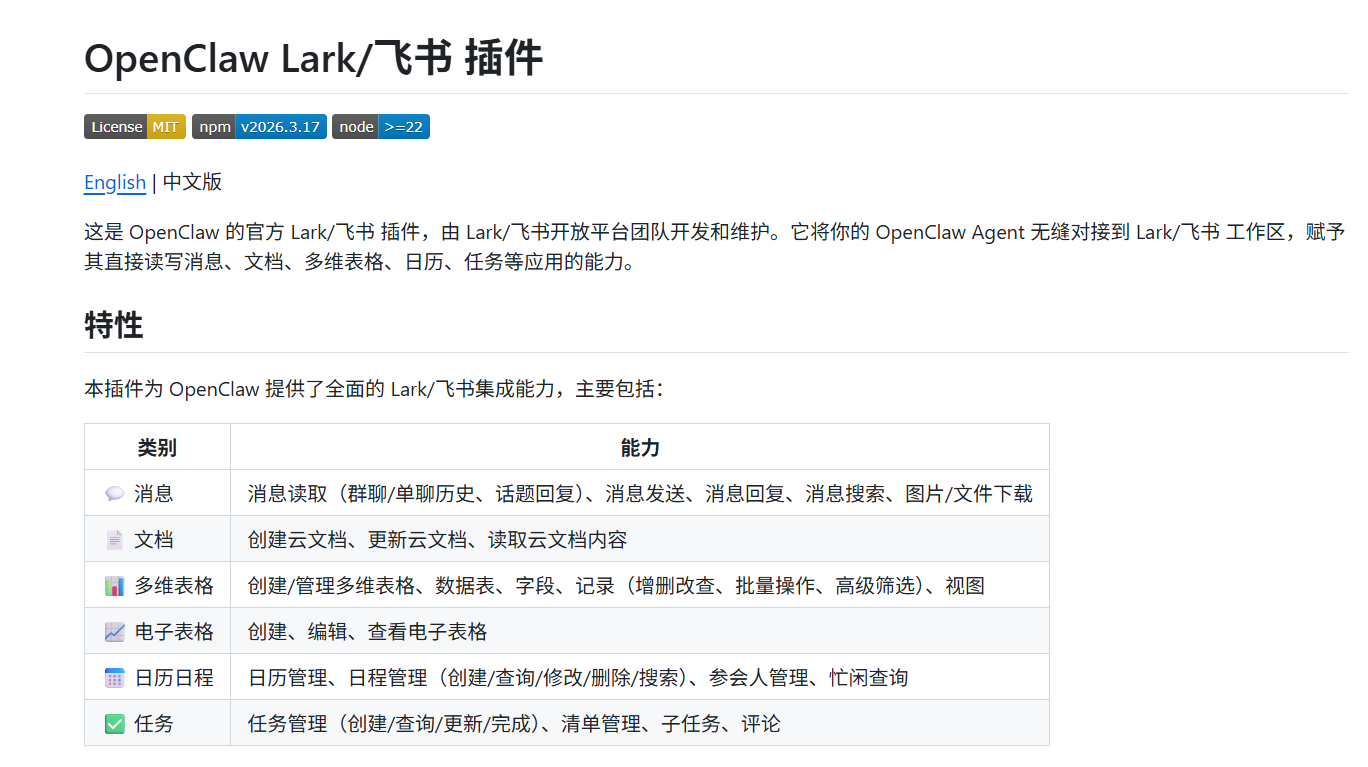 读取OpenClaw飞书官方插件项目github.com/larksuite/o…