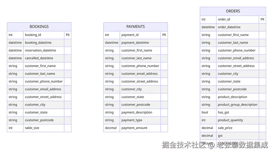 在餐厅里,一个订单宽表直接包含了订单金额、时间、客户姓名、客户电话、菜品名称、价格、支付方式等等所有信息。