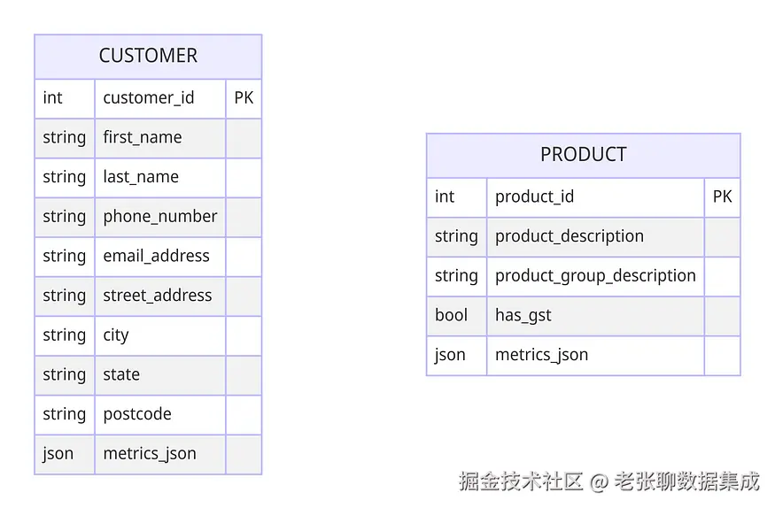 - 卫星表:存储所有描述性属性,比如客户的姓名、地址,产品的价格等,并完整记录每个属性变化的历史。