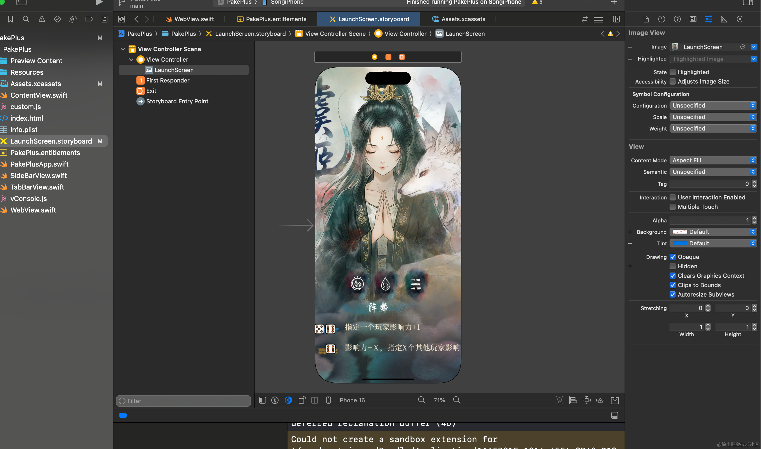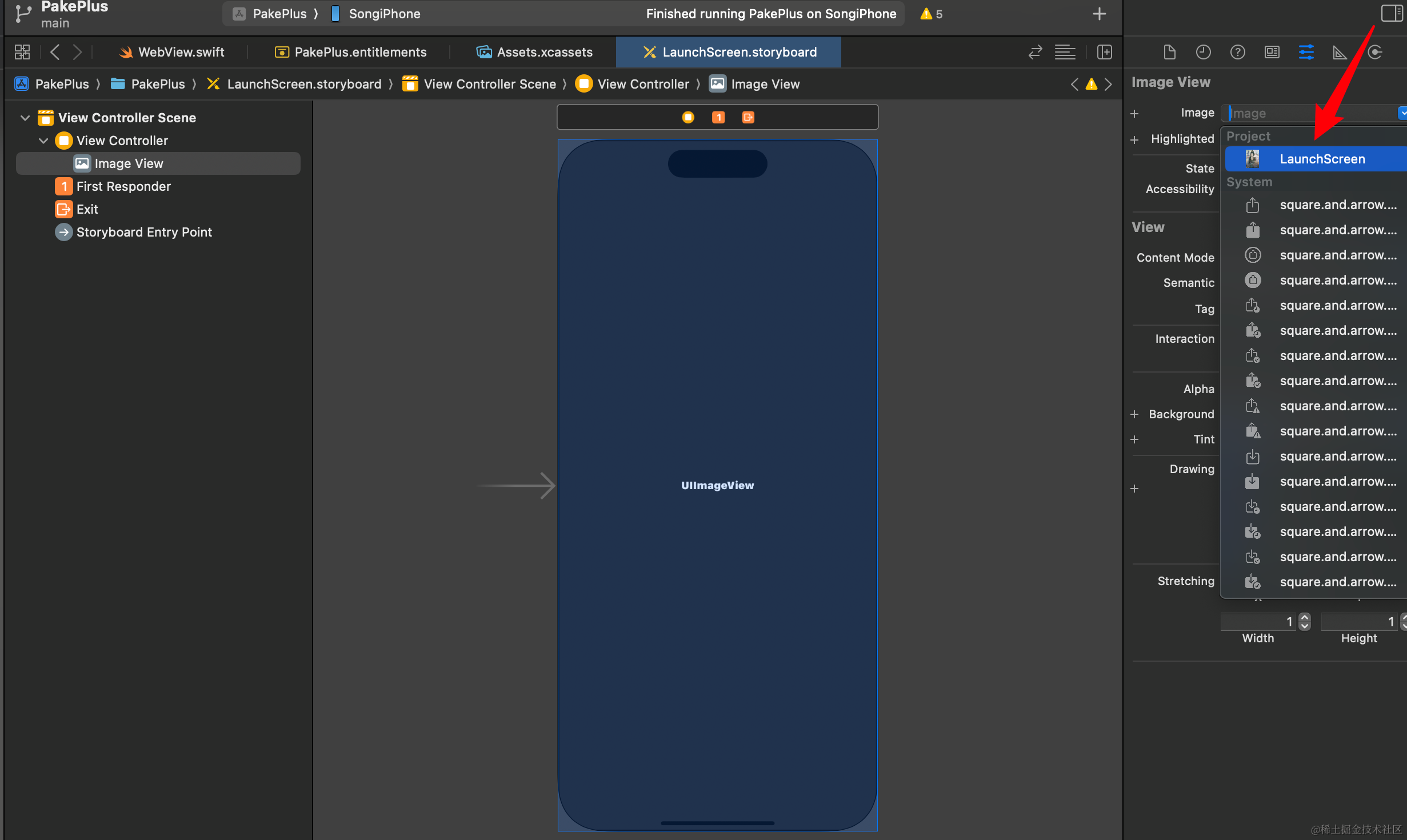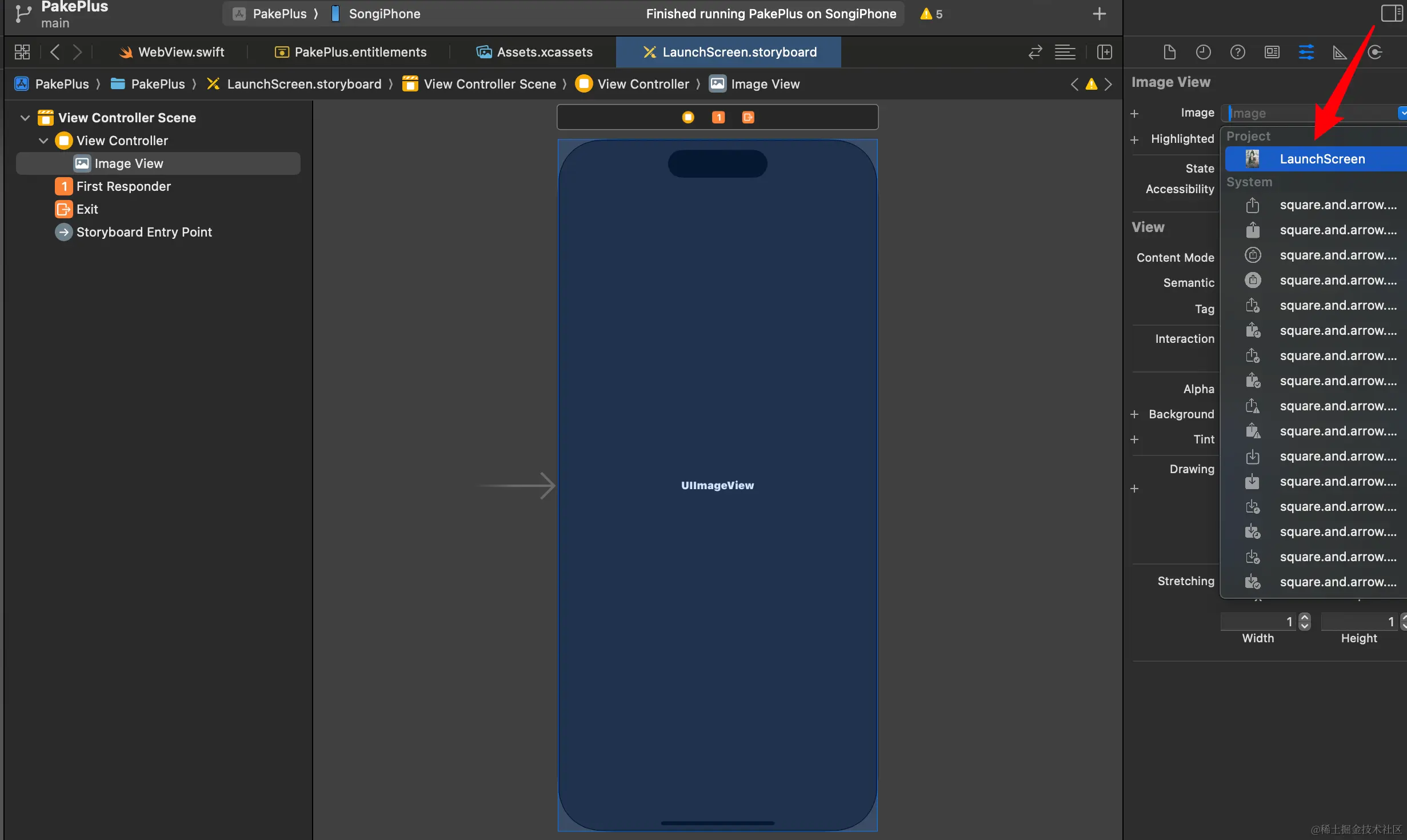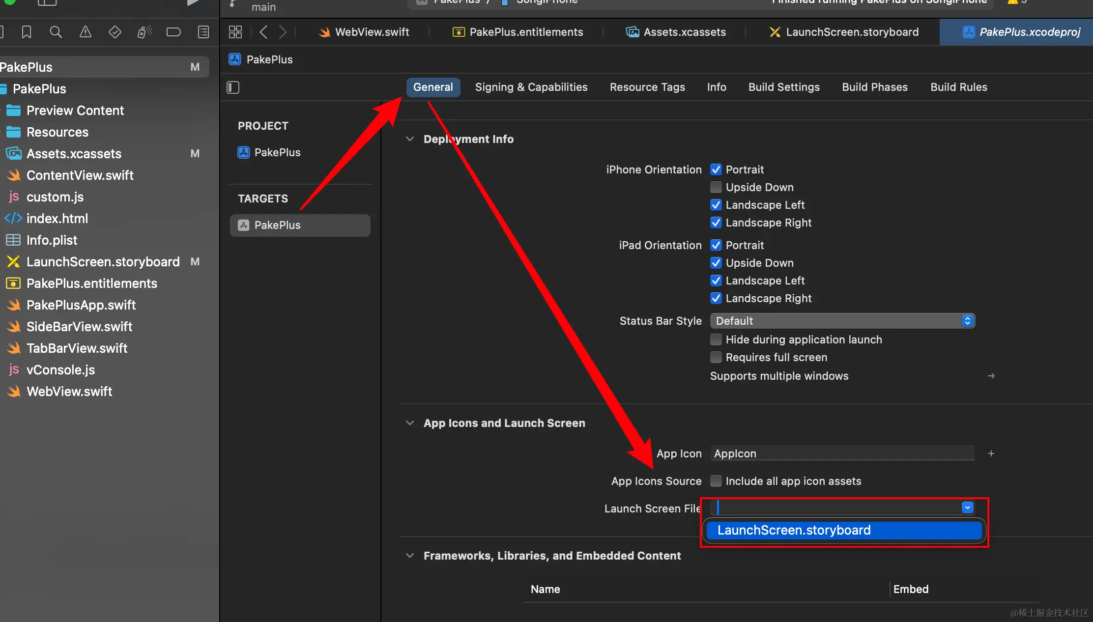 设置后,需要配置xcode中的项目启动图为这个 LaunchScreen.storyboard 文件: