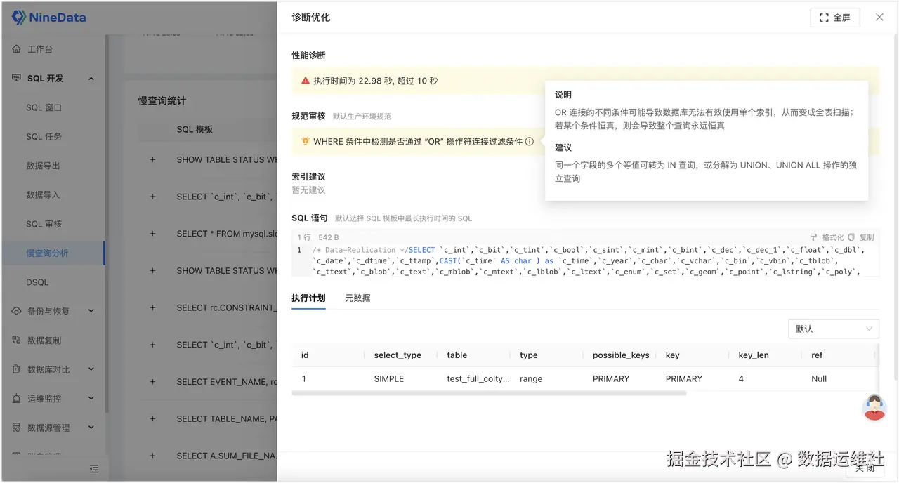 在这一点上,NineData 社区版更适合被放在团队慢 SQL 治理的主链路里,而不是只当成一个问题发生后才启用的工具。