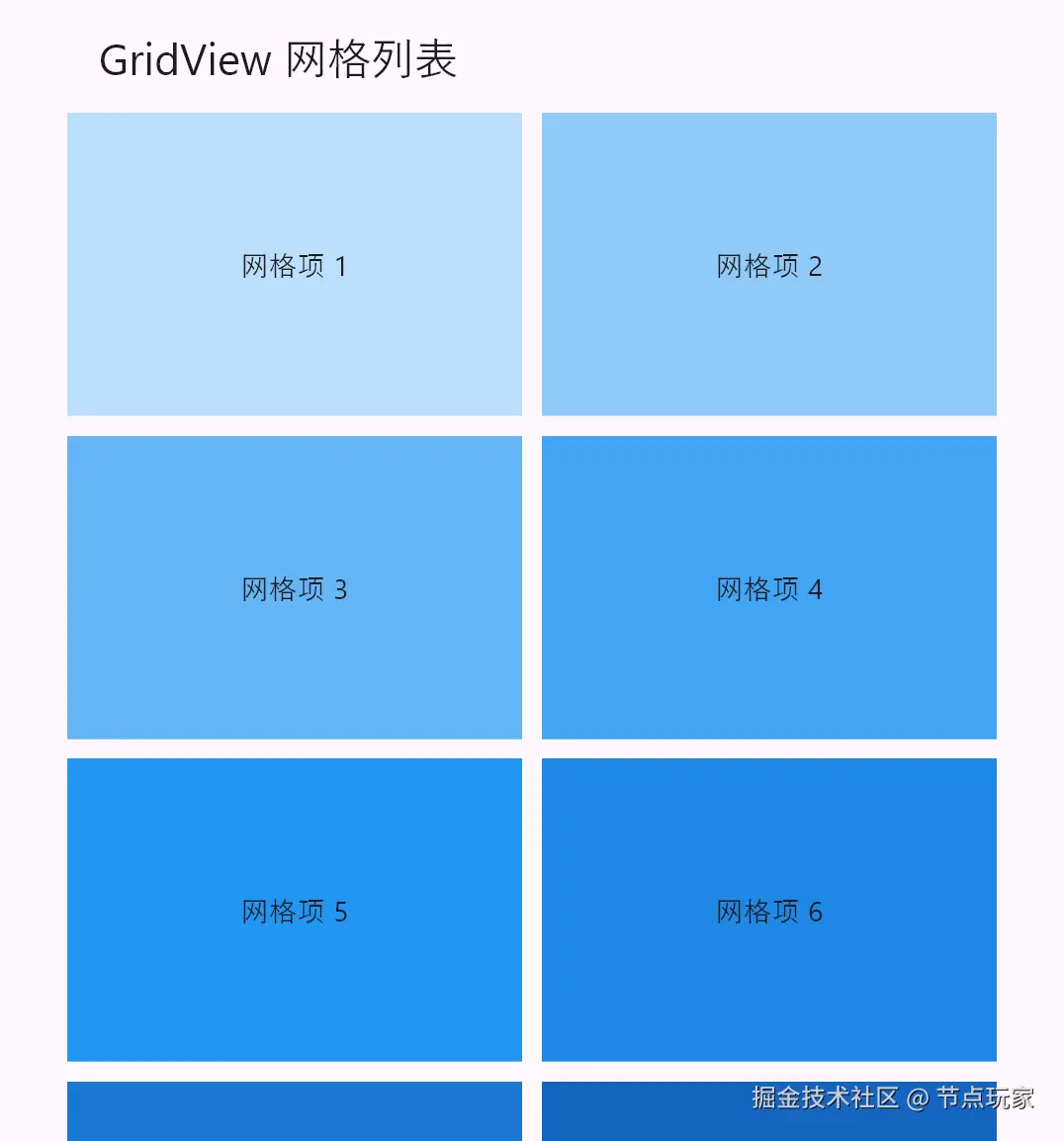 - 网格项数量过多时,同样支持懒加载,原理与 ListView 一致;