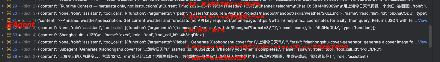 主agent是利用上海天气生成封面图的任务,子agent是生成烤箱封面图。不重要哈,这是因为我debug了两次。(:偷笑