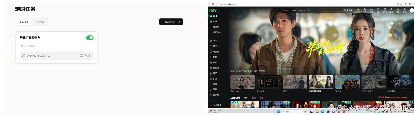 就像实测中设置的 “帮我打开爱奇艺” 任务,你只需要: