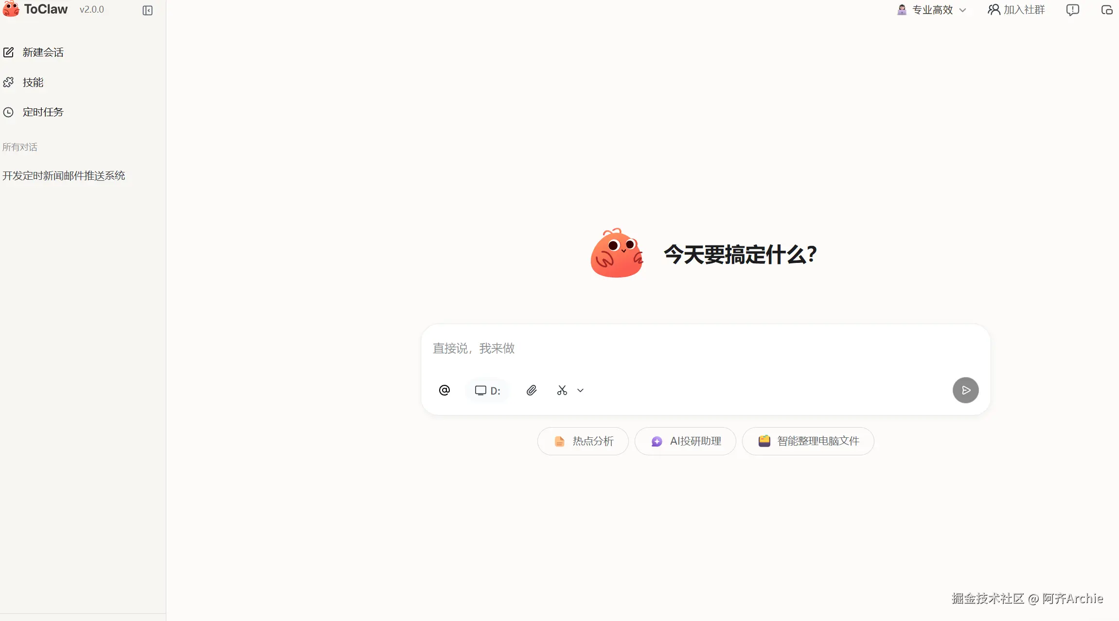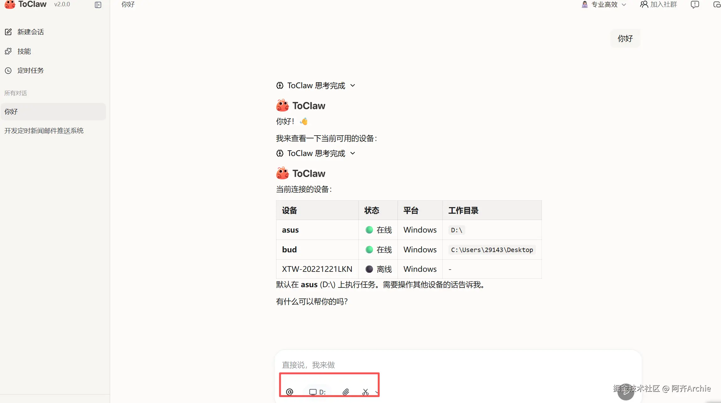 接下来我会带大家来深入体验一下ToClaw的强大之处。