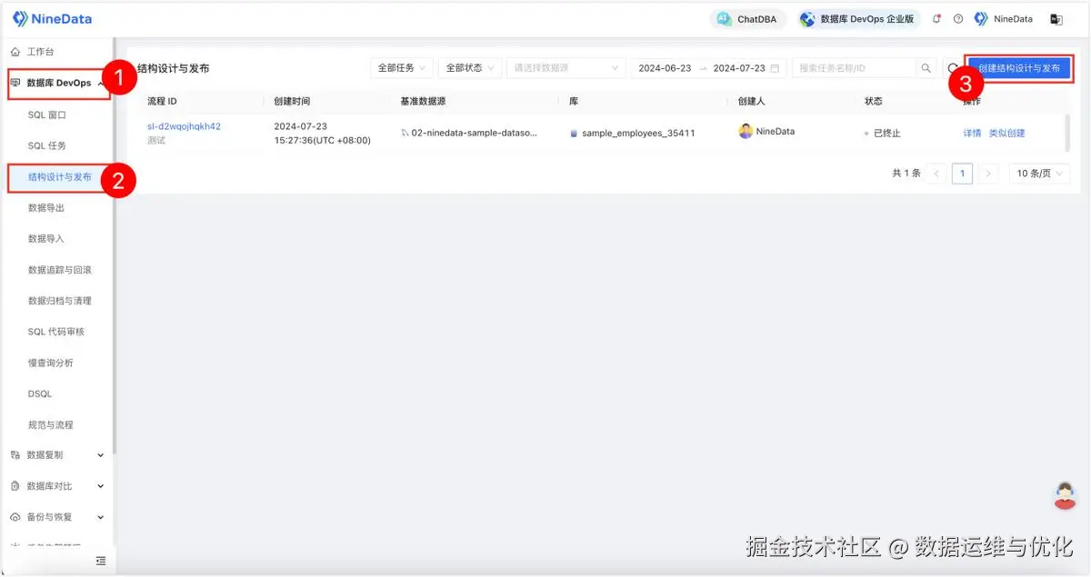 NineData 的“结构设计与发布”之所以值得单独讨论,就在于它不是又一个仅可提交 SQL 的页面,而是一套专门为多环境结构发版设计的流程编排机制。