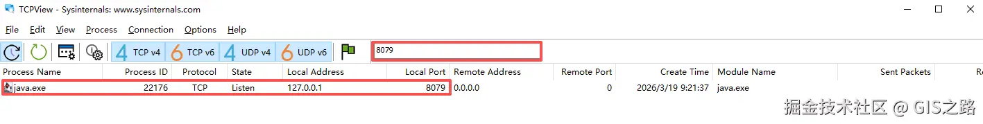 电脑或服务器时常会运行多个服务,经常会遇到端口占用的问题,有了TCPView,可以方便、快速的查造出端口占用程序,而不用记住一连串命令,在cmd中进行操作。在搜索框输入端口号,如“8079”,然后回车进行搜索。
