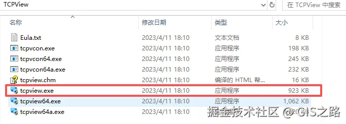 软件解压后文件显示如下,无需安装,直接运行tcpview.exe程序即可。在启动