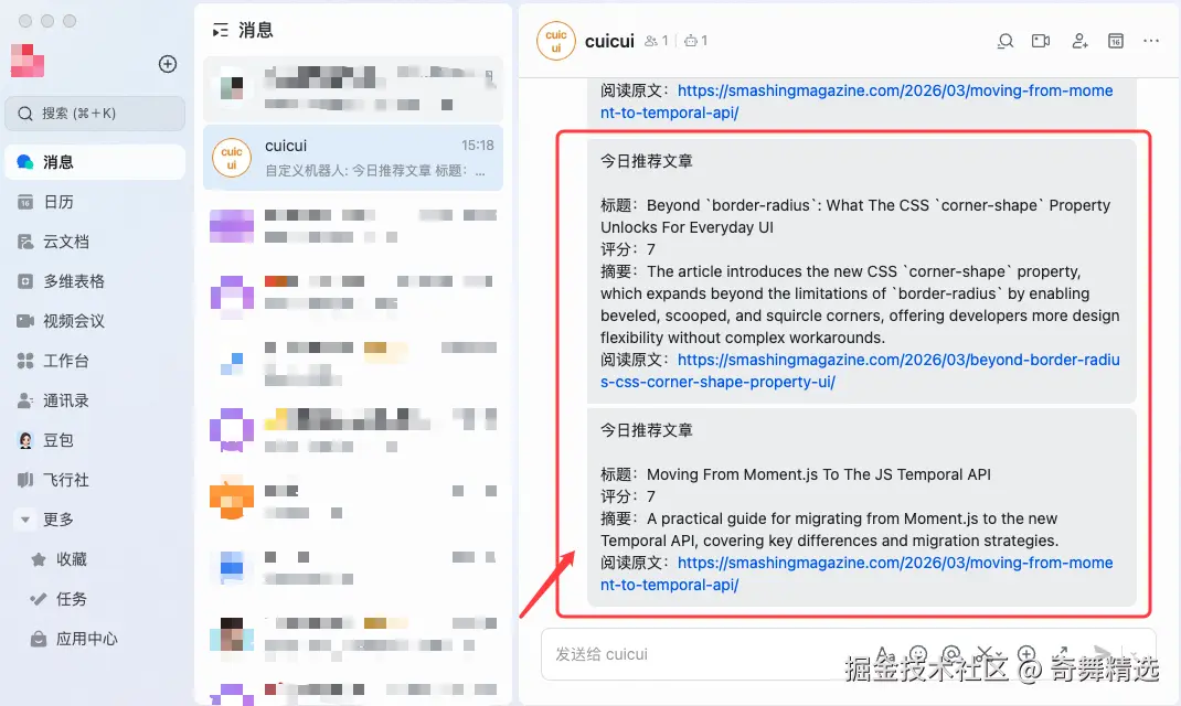 - 多平台扩展:飞书只是示例,你可以拓展到企业微信、Slack、Telegram 等。