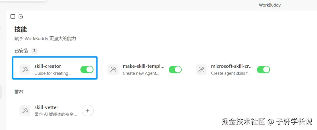 还是只需要直接对话让workbuddy安装skill即可,没什么难度,现在龙虾已经非常智能化了。