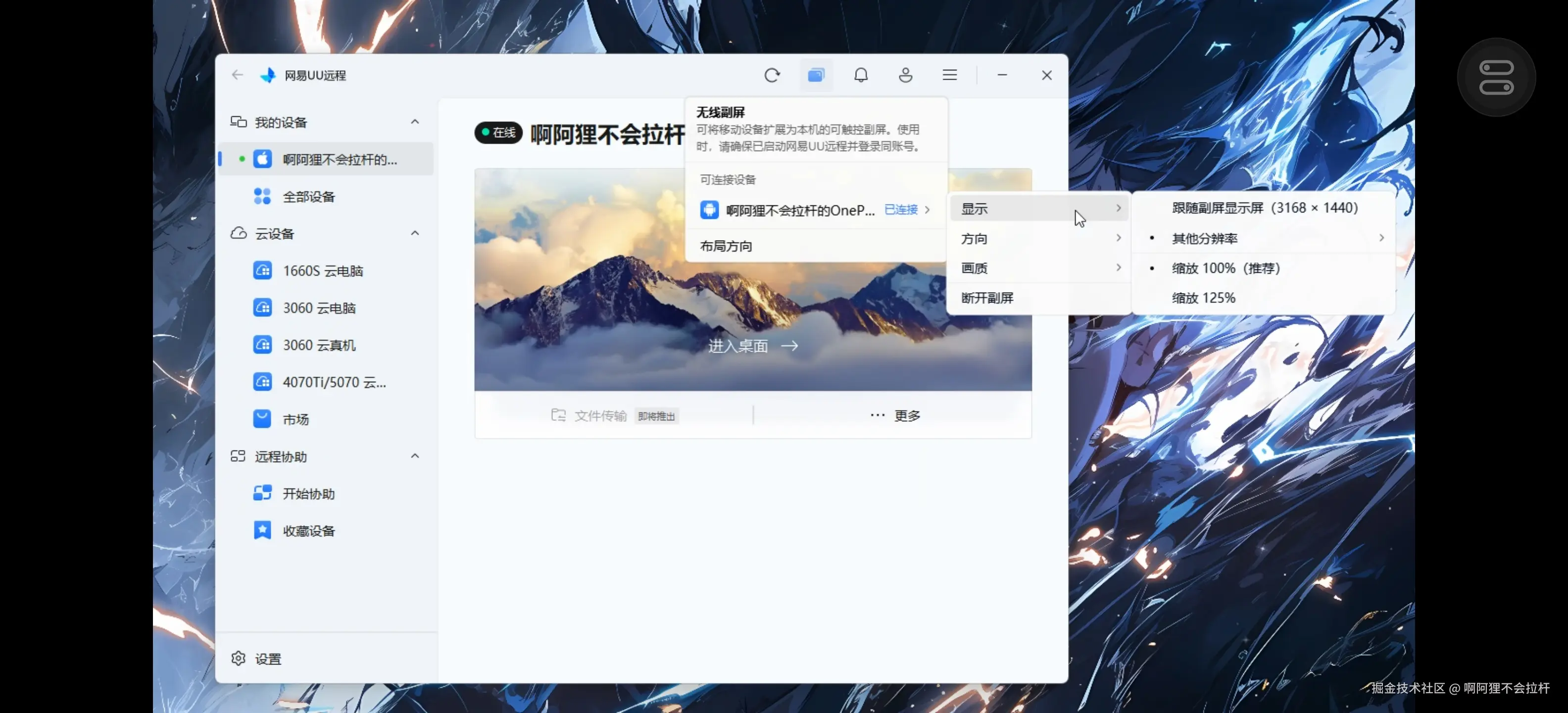 - 副屏设备保持 UU 远程运行,与主屏为同一账号;