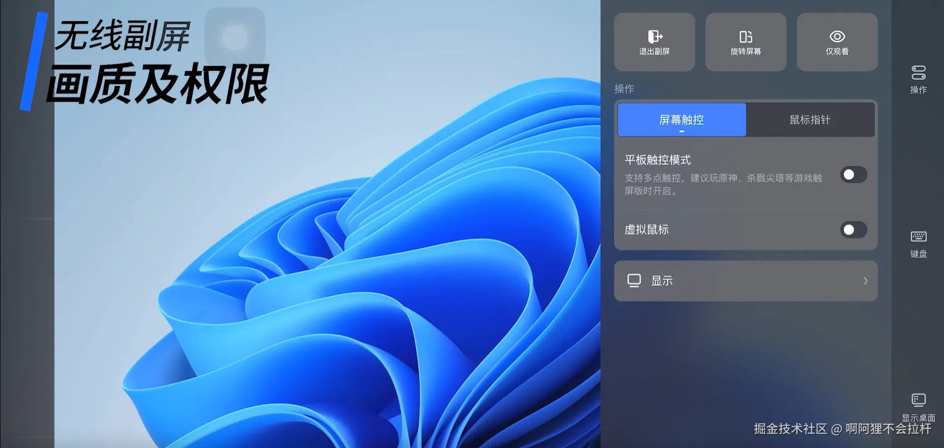 - 连接成功后,移动端自动成为副屏,可调整分辨率、方向、画质等参数。