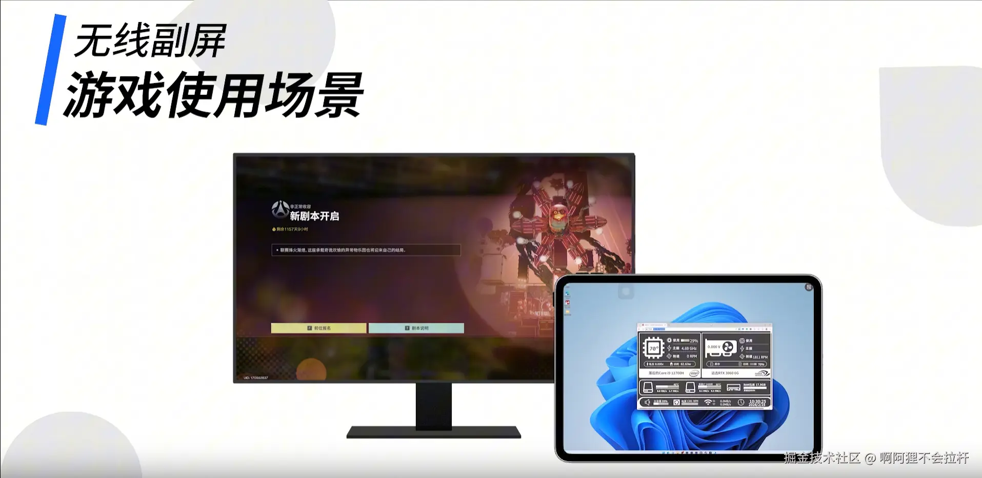 电脑主屏沉浸运行游戏,副屏同步查看攻略、研究装备搭配,不切屏不打断节奏;