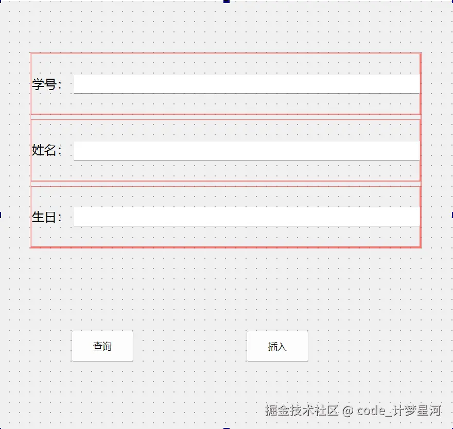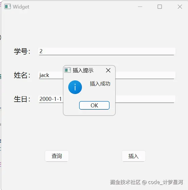 声明三个QString型变量,分别存储输入框里的学号、名字、生日