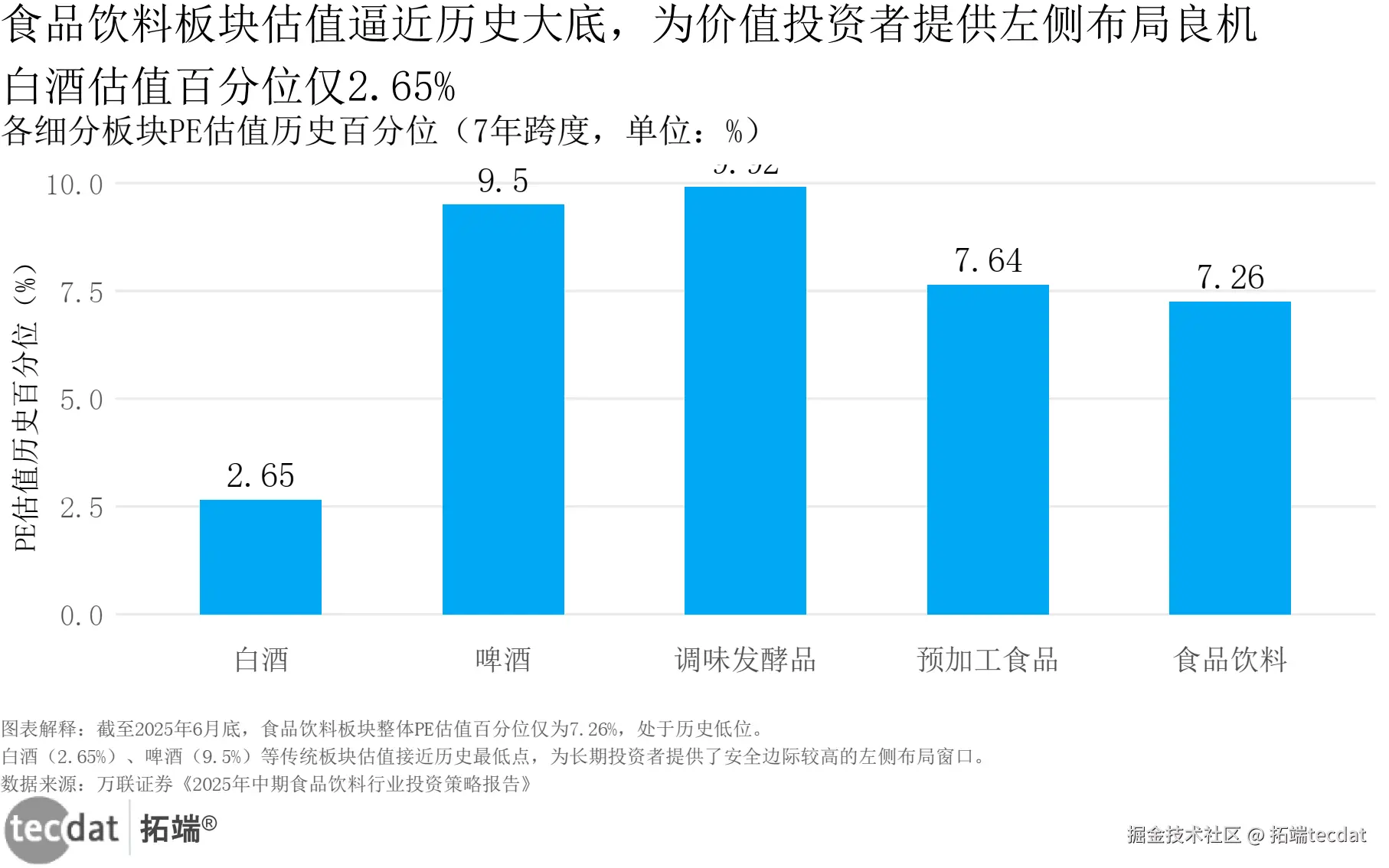 食品饮料行业_估值百分位_条形图表20 数据EXCEL及图表PDF模板已分享到会员群