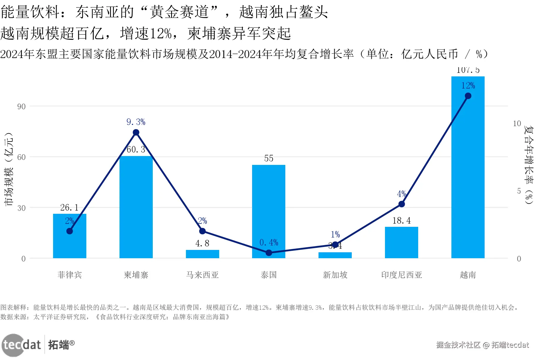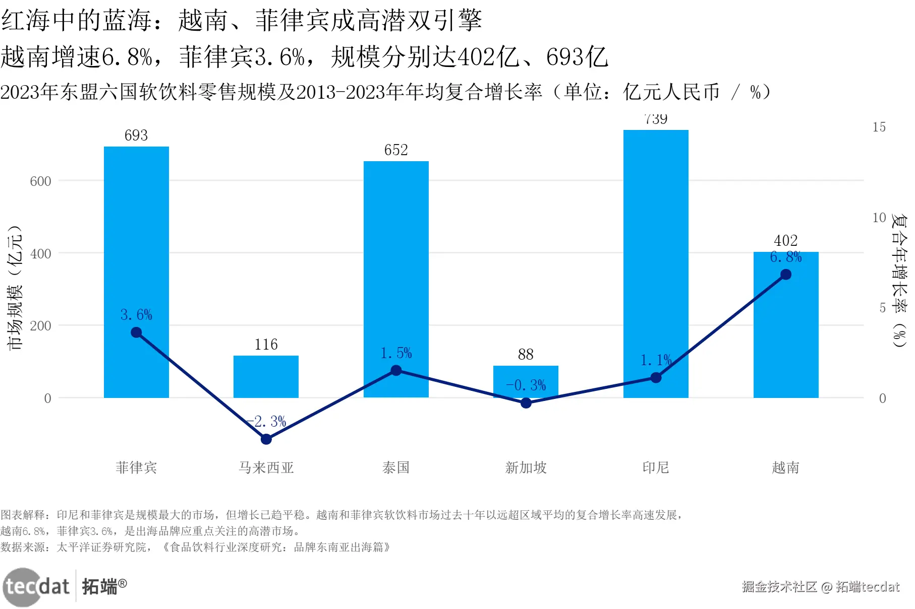 食品饮料行业_东南亚市场规模增速_双轴图表21 数据EXCEL及图表PDF模板已分享到会员群