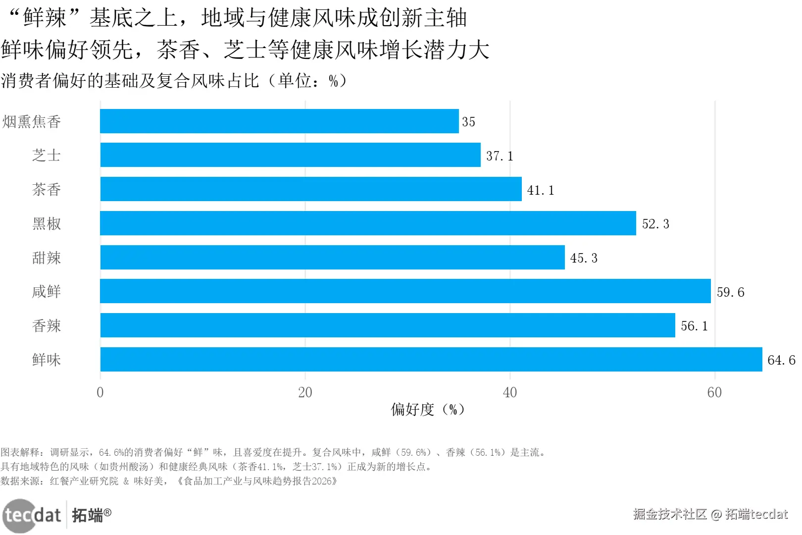 | 图表7 | 风味偏好 | 鲜味64.6%,香辣56.1% |