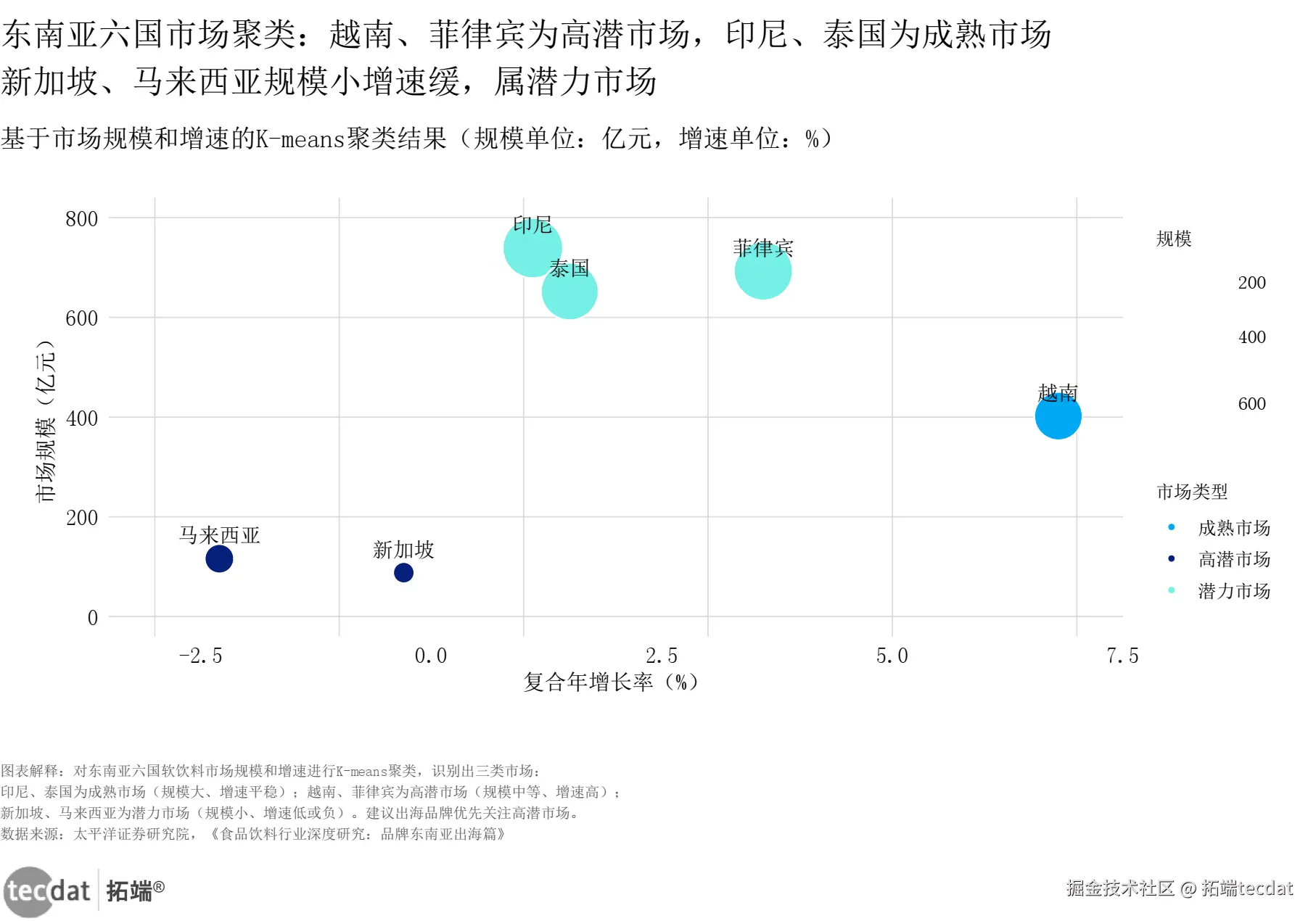食品饮料行业_东南亚市场聚类_气泡图表ML2 数据EXCEL及图表PDF模板已分享到会员群
