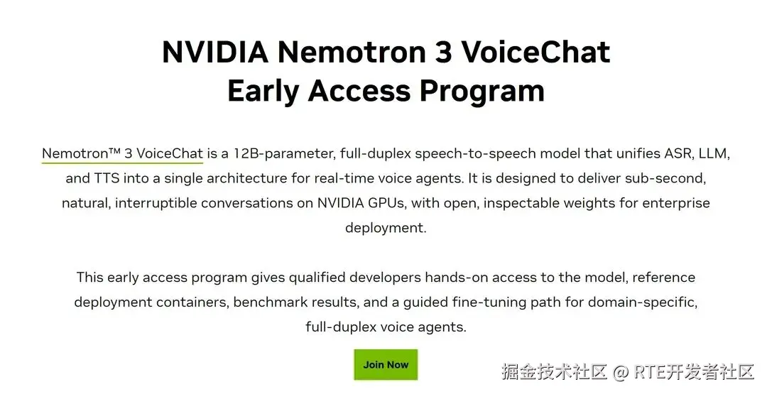NVIDIA 宣布推出 Nemotron 3 VoiceChat 抢先体验计划,这是一个拥有 120 亿(12B) 参数的端到端实时全双工语音转语音模型。