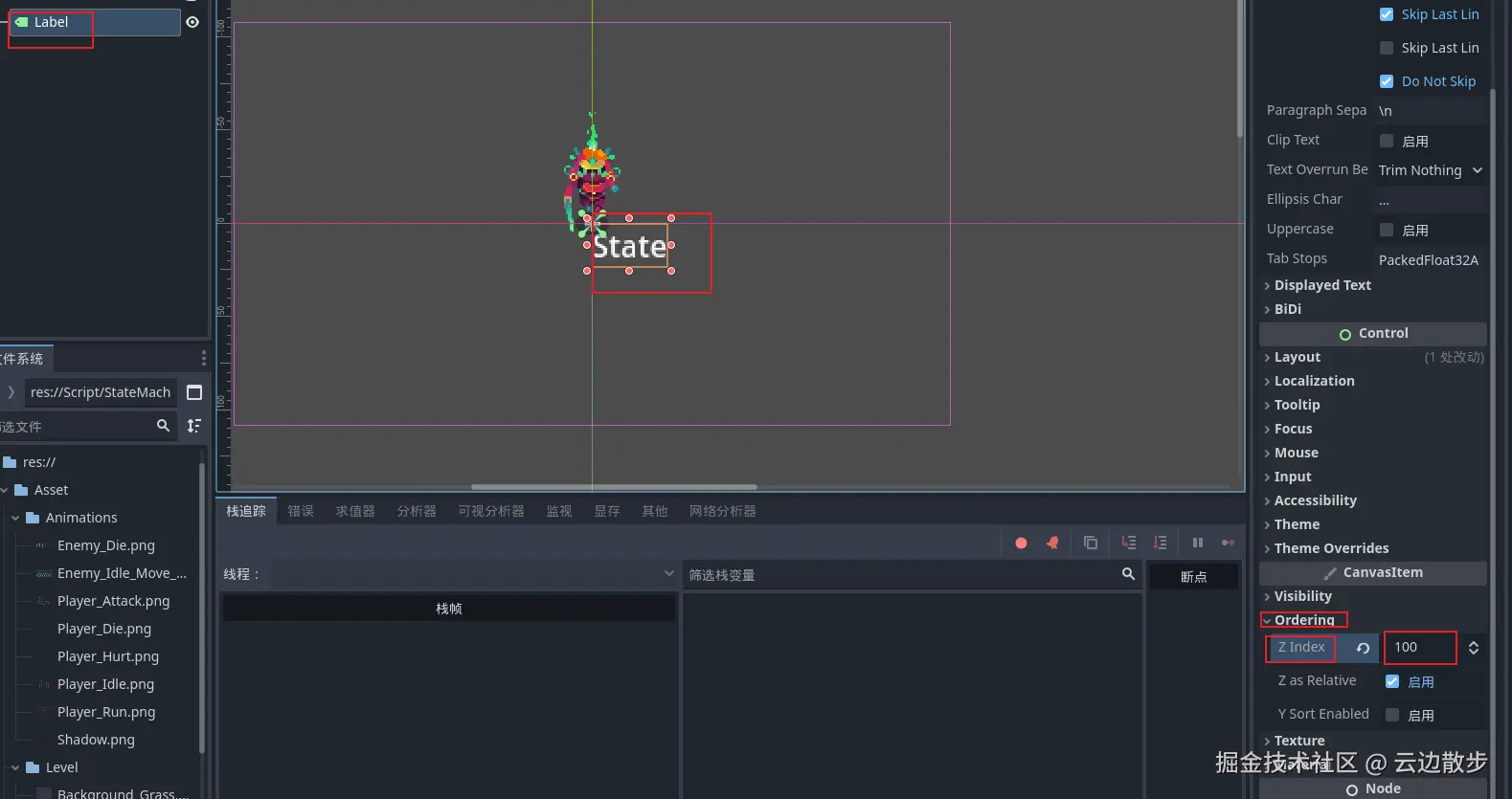 DebugLabel - 在状态脚本的更新函数中修改