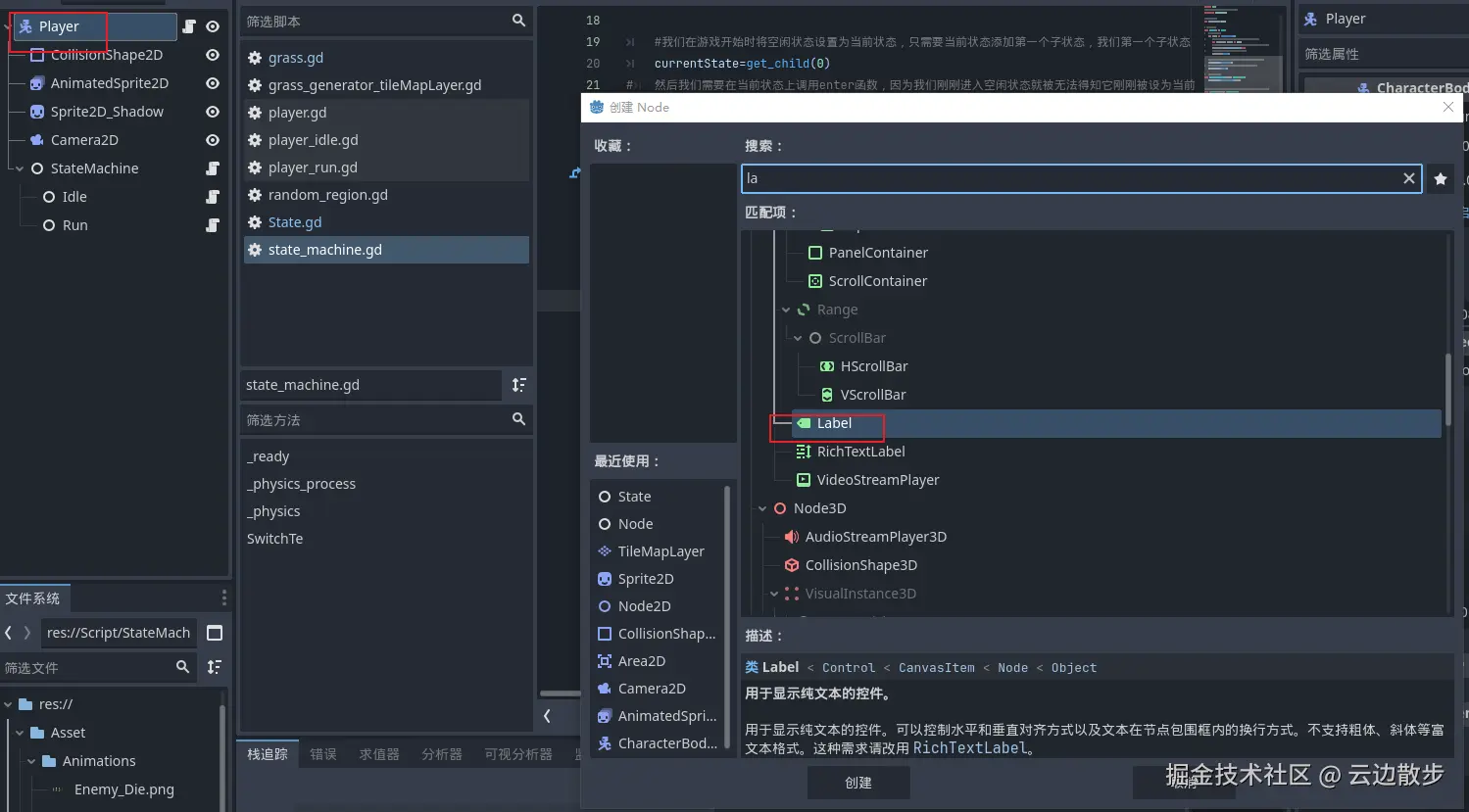 - 做godot系统的ui系统,我们右键点击玩家节点,给它添加一个新的节点,是标签节点就是文本节点