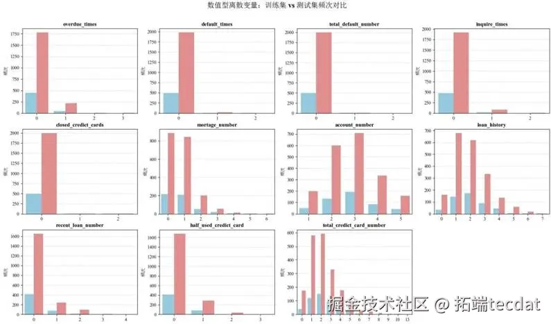 最关键的发现来自训练集与测试集的分布对比。通过分类型可视化,我们确认了部分特征存在明显分布偏移。