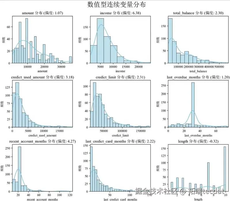 图2 数值型连续变量分布