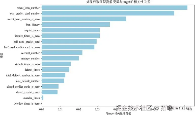 图11 处理后数值型离散变量与target的相关关系