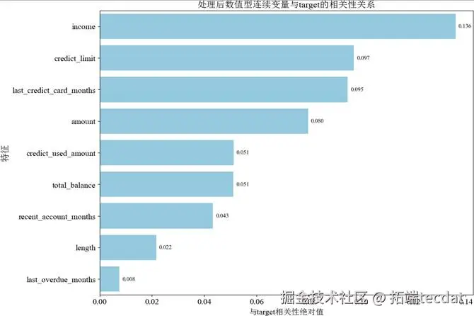 图10 处理后数值型连续变量与target的相关关系