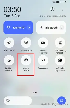 - 在新旧两台真我手机上,下拉控制中心,开启Wi‑Fi、蓝牙、realme Share。
