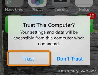 步骤3:当您的iPhone询问您是否信任这台电脑时,点击“信任”。