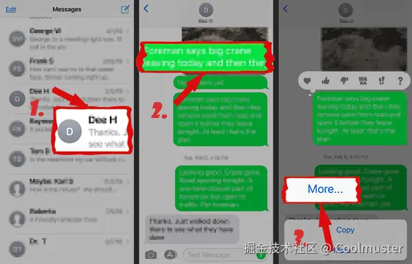 步骤1:打开iPhone上的“信息”应用,点击要传输的对话,然后按住选择一条信息。( iPhone短信消失了?)