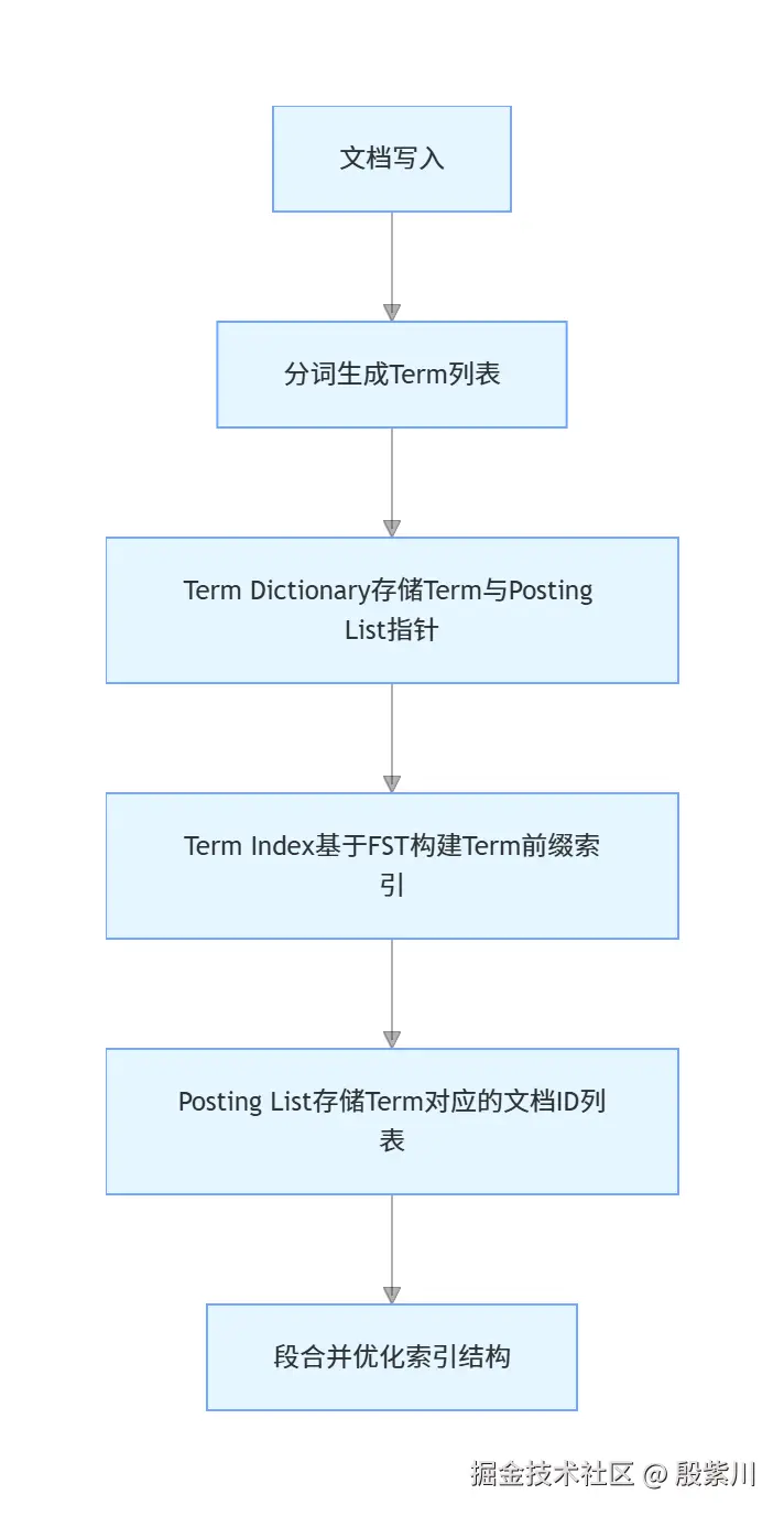 - 段生成后,会自动构建对应的Term Dictionary、Term Index和Posting List,此时文档就可以被检索到了。